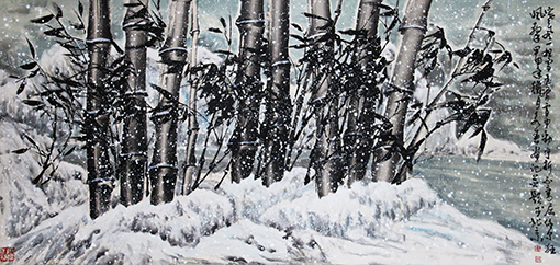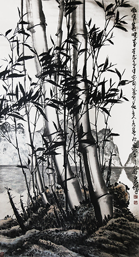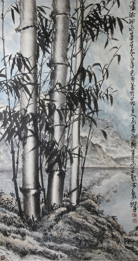 竹子在中国的文化中,是有骨气、有气节、坚贞的象征,同样也象征着生命的弹性、精神的真理,历代多少仁人志士常赞美竹、咏竹、画竹、写竹,它们有着虚心亮节、潇洒挺拔的君子风度,世人常用竹来寄托自己的情感或以竹的品质为自己品格的发展方向。观其画竹,以书入画,且常以水墨表现竹的形象与气韵,其娴熟的笔触、流动的情韵、形态各异的构图和师法自然而不断创新的精神跃然纸上,其一枝一干,一节一叶,疏密有致,虚实相间,气韵非凡,表达了不同意境。给人以不同的审美视觉,令人击节赞叹。既有水墨画浓淡得体、黑白相间、干湿相济、以墨取气、以墨取韵的润泽华滋之美,又有对竹子沐雨栉风、顶天立地精神的赞美以及对竹子正直君子气质的理解, 做到了人画竹,竹化人的境界,观之令人心旷神怡。
