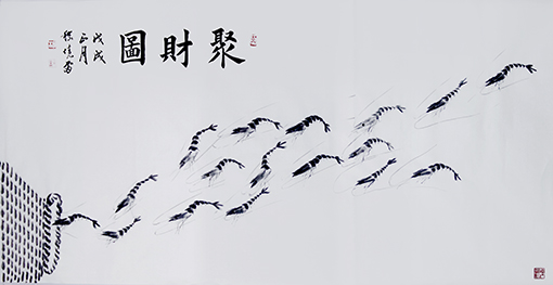 嵇境雷作品《聚财图》规格:138cmx70cm