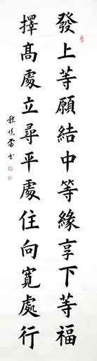 嵇境雷作品《发上等愿、结中等缘、享下等福、择高处立、寻平处坐、向宽处行》规格:180cmx50cm