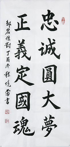 嵇境雷作品《忠诚圆大梦、正义定国魂》规格:72cmx34cm