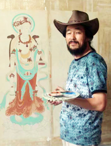 康宗福,1973年生于甘肃武威,从小酷爱绘画艺术,1996年至1998年进修于四川美术学院油画系,潜心学习素描、油画、水彩画、中国工笔画,2000年定居于敦煌,研习敦煌壁画至今,现为甘肃省美术家协会会员,敦煌市美术家协会会员。