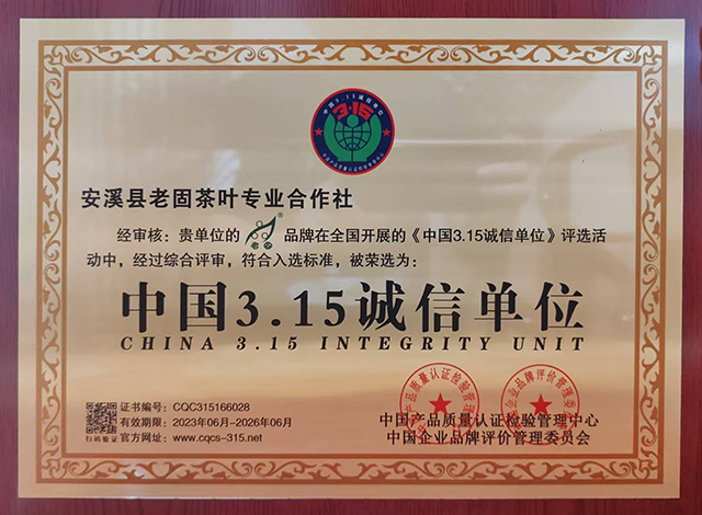 2023年6月经审核:单位的品牌在全国开展的《中国3.15诚信单位》评选活动中,经过综合评审,符合入选标准,被荣选为:“中国3.15诚信单位”