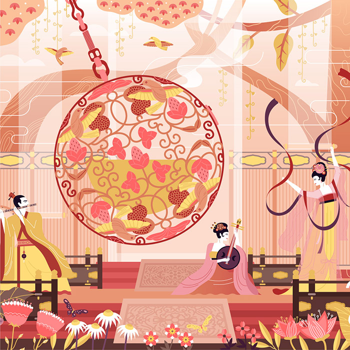 这款球状的葡萄花鸟纹银香囊,原为大唐第一美人杨贵妃的贴身饰品。它凭借高超的镂空雕刻技艺,巧妙展示了盛唐时期古丝路的艺术风格。而惊叹于此镂空技艺,斯沃琪选择将该元素保留并灵活融入腕表画布的创作中,惟妙惟肖地勾勒了一副葡萄缠枝、花鸟相依的芬芳美景。