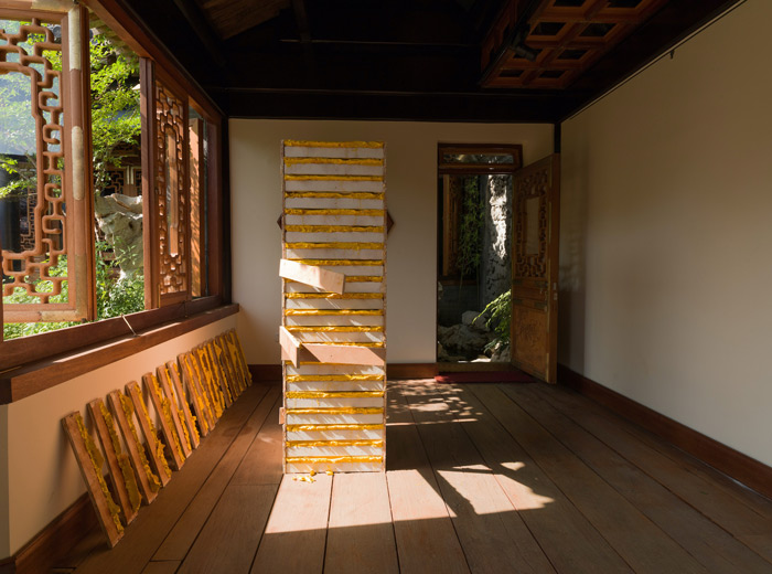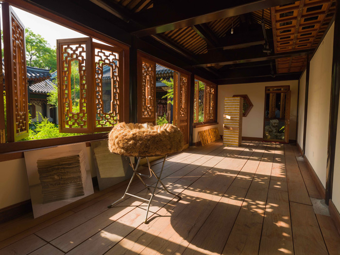 在合艺术中心,朱金石暂别了问题与解决,用“稳”妥的水准,随心所欲,向东方文化中的禅意飘去。立足于当代的思考,经历四十余载砥砺后,举重若轻地将当代性与传统因素碰撞出戏剧效果。太阳的光线、场域、文化内涵,他将诸多因素融合在一幕戏剧中,起承转合,时而铿锵时而低吟。在时间和空间中、在苏式园林中,触目不繁,可游可卧可赏。