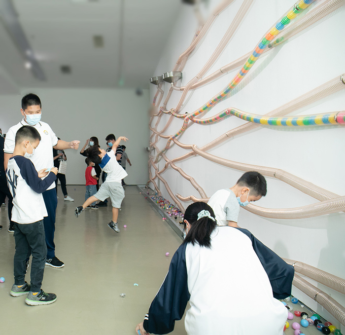展览定制课是基于“今日”全年高质量的大型展览量体裁衣,由今日美术馆开发并推出的以观展为核心的趣味艺术课程,在艺术工坊中让孩子们主动思考展览内容,发觉艺术与生活的关系,在专业老师的带领下将观察力、感受力转化为艺术创造力。今日美术馆儿童美育课,则是跨学科作为课程内核理念,以艺术+的形式展开,打开孩子们的视野,让他们拥有跨学科的思维,以艺术贯穿于各学科,同时以开阔的方式赏析艺术,在孩子们的内心多重构建艺术的维度。馆校结合项目,是今日美术馆公共教育携手艺术家主动迈进校园,与师生共同创作可碰触、可互动的装置艺术作品,以此帮助校园内的孩子们了解并欣赏艺术,提升观念。今日美术馆希望通过馆校结合,主动打破展览与场地的界限,消除美术馆的地理和心理层面的边界。