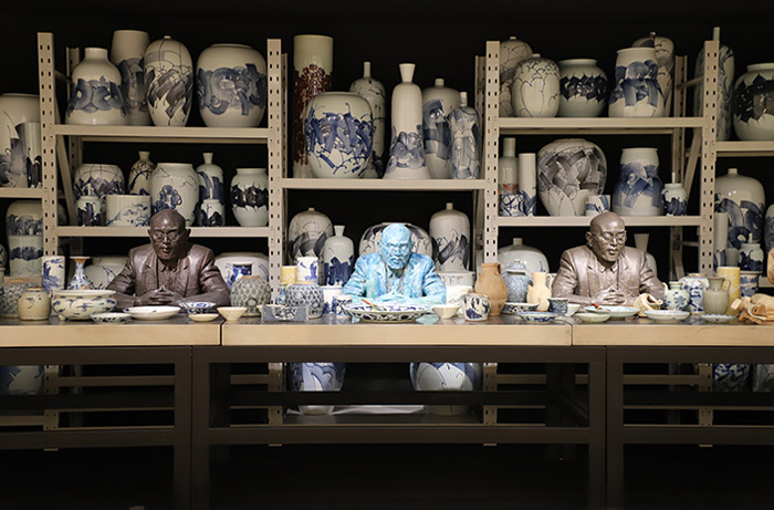 吕品昌作品:中国写意no.48-鉴宝者 青铜及陶瓷现成品 950x60x250cm 7510x120x150cm 2011年