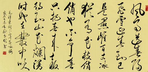 行草《毛主席词·卜算子咏梅》 规格:138×34cm 价格:4000元一幅