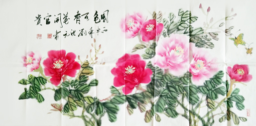刘洪元作品《国色天香、花开富贵》 规格:140cm×70cm 价格面议