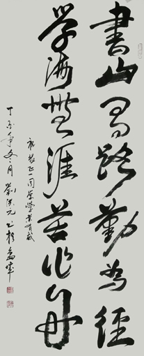 刘洪元作品《书山有路勤为径、学海无涯苦做舟》 规格:140cm×70cm 价格面议