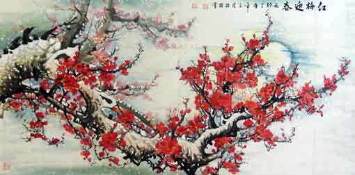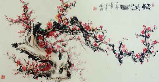 崔维国作品 《红梅迎春》 规格:139cm×69cm