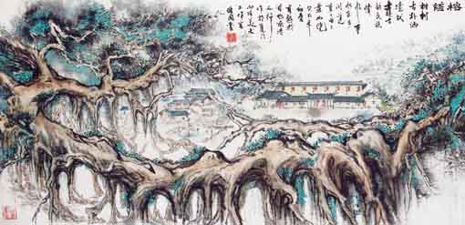 崔维国作品 《榕荫乡情》 规格:139cm×69cm